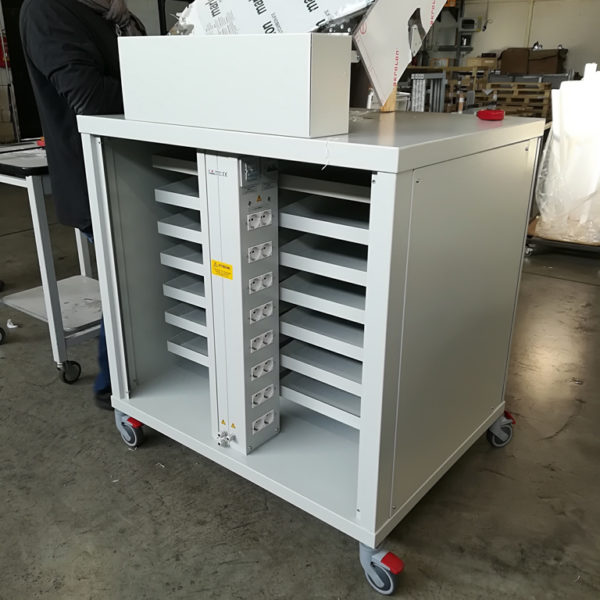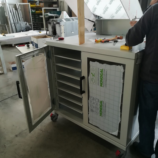 Armadio su ruote per il contenimento di strumentazione necessaria al JIG di collaudo sistemi elettronici.