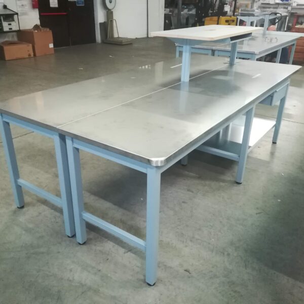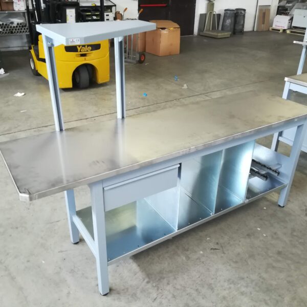Piani lavoro ad alta resistenza (multistrato ligneo, acciaio inox, etc…) per resistere al tipo di impiego.