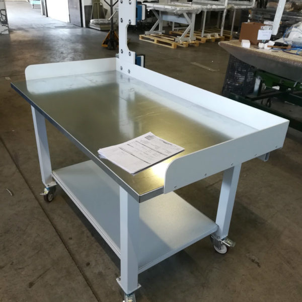 Piano di lavoro in acciaio INOX, adatto anche per saldature o fusioni delle guaine.