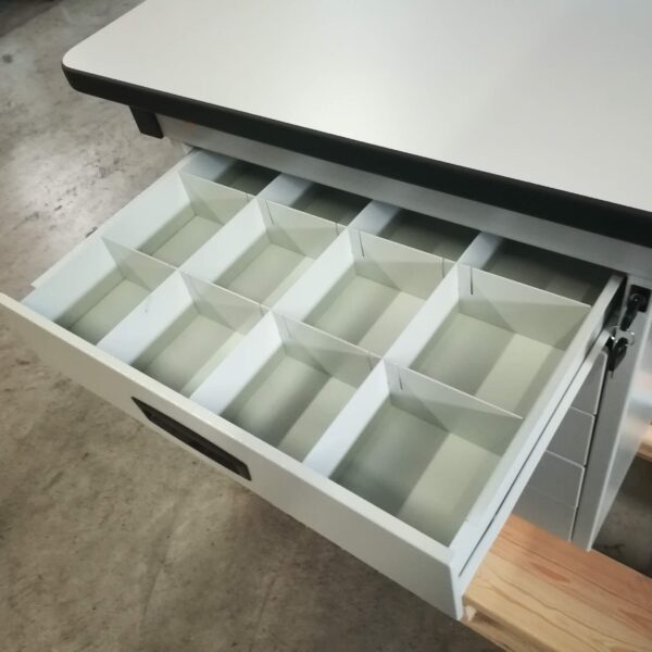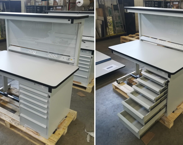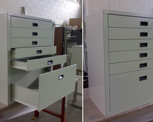 Costruite in solide e robuste strutture metalliche, garantiscono prestazioni, stabilità e durata. Possibilità di fornitura con qualsiasi dimensione, portata e numero di cassetti. Soluzioni ad armadio o su ruote. A corredo Tavoli nuovi o già esistenti. Anche per tavoli NON di fabbricazione Nuova Consul.