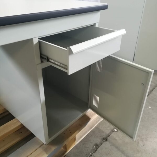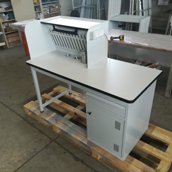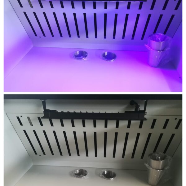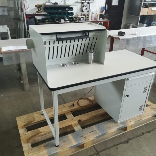 Dotato di mobiletto, cassetto e parete aspirante, può essere integrato con lampade LED tradizionali o a luce di Wood.